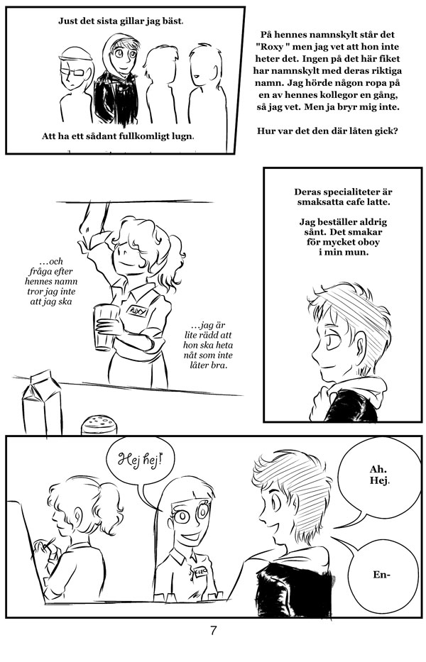 SvaraRaderaWow, superfint! Gillar Roxys fötter på sidan 9. En fråga: Varför är det så konstig betoning på "hen" i första repliken på sidan 8 (bokstaven "e" sticker ut) ?